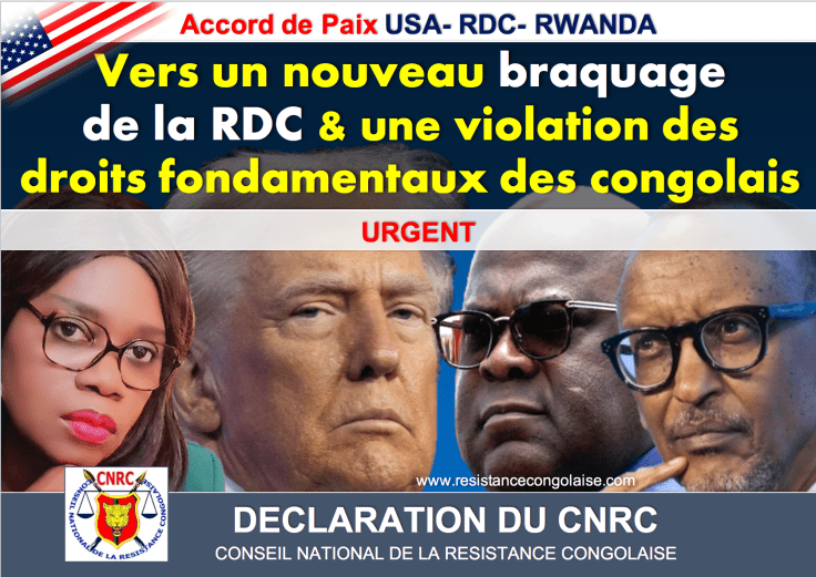 - URGENT- Accords de Paix USA-RDC-RWANDA : Vers un nouveau braquage de la RDC et une violation des droits fondamentaux des congolais (Déclaration du CNRC)