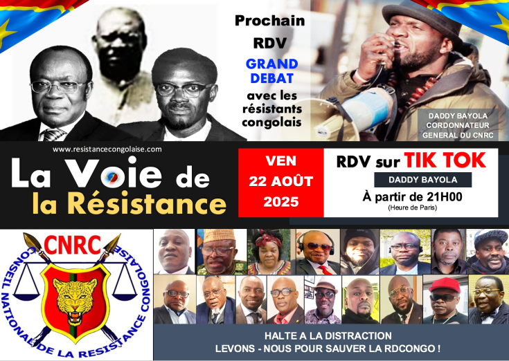 - « La Voie de la Résistance » Prochain RDV ce Vendredi 22 Août 2025 à 21H00 – Grand débat avec les résistants congolais (CNRC)