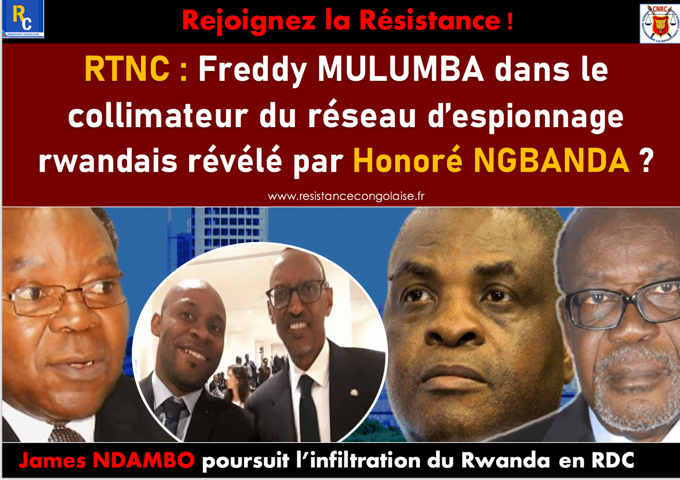 - Malheureusement pour eux, à la place des billets verts ils espéraient encaisser, ils reçurent des injonctions venant des responsables de l’ANR, du CNS et du Cabinet du chef de l’état leur intimant l’ordre de stopper immédiatement leurs intimidations sur James NDAMBO ! Les deux lascars ignoraient certainement que le réseau rwandais avait des bras très longs en RDC!