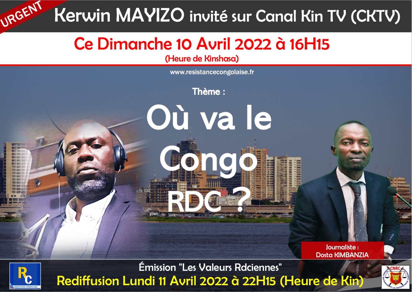 Rediffusion Lundi 11 Avril 2022 à 22H15 (heure de Kinshasa)