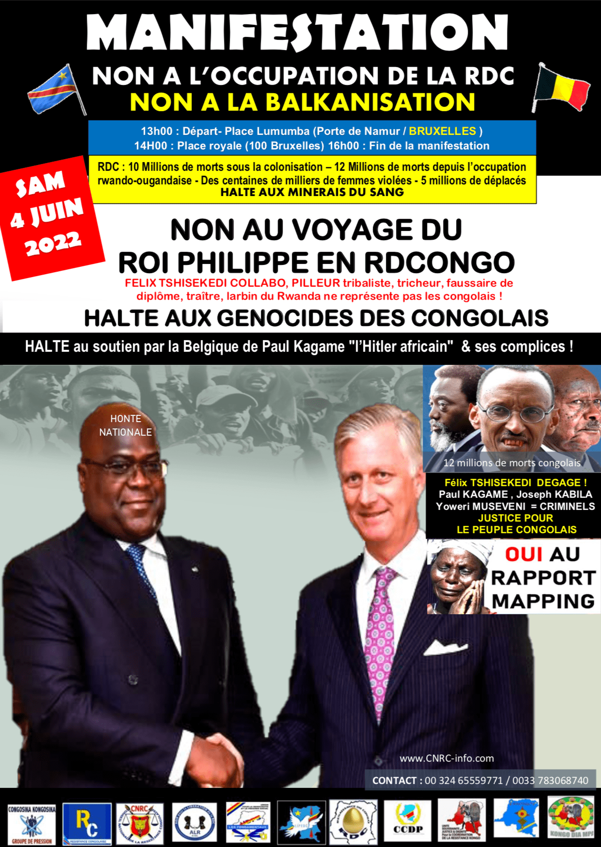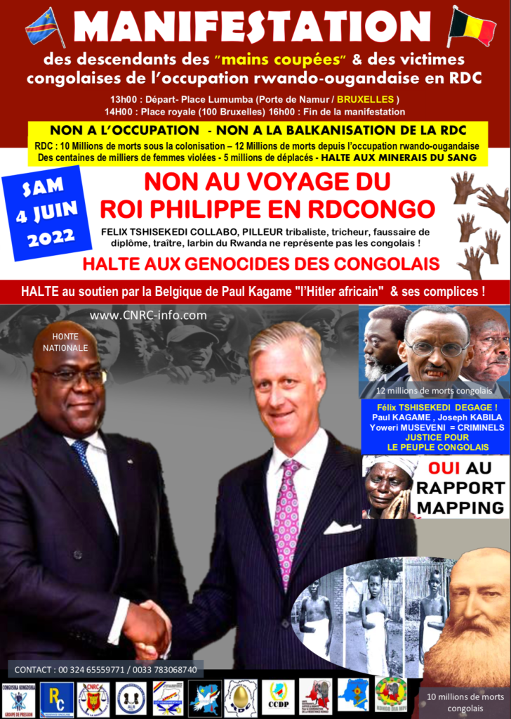 URGENT/ Samedi 04 Juin 2022- Manifestation à Bruxelles contre le voyage du Roi Philippe en RDCONGO Partager : Cliquer pour partager sur X(ouvre dans une nouvelle fenêtre) X Cliquez pour partager sur Facebook(ouvre dans une nouvelle fenêtre) Facebook J’aime chargement… Laisser un commentaire Annuler la réponse. Δ