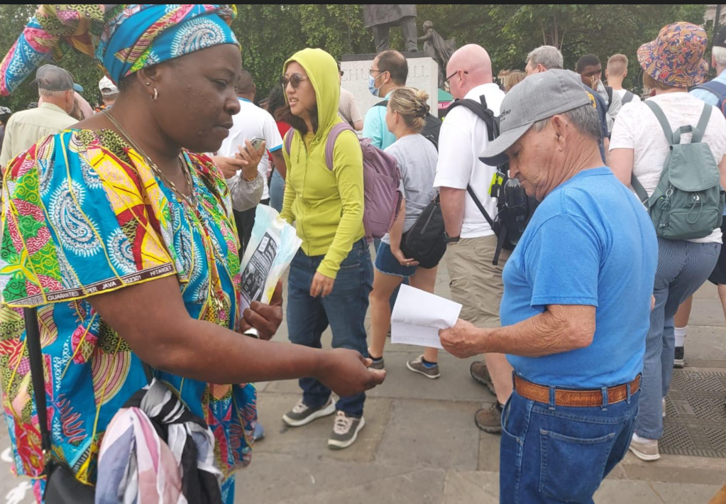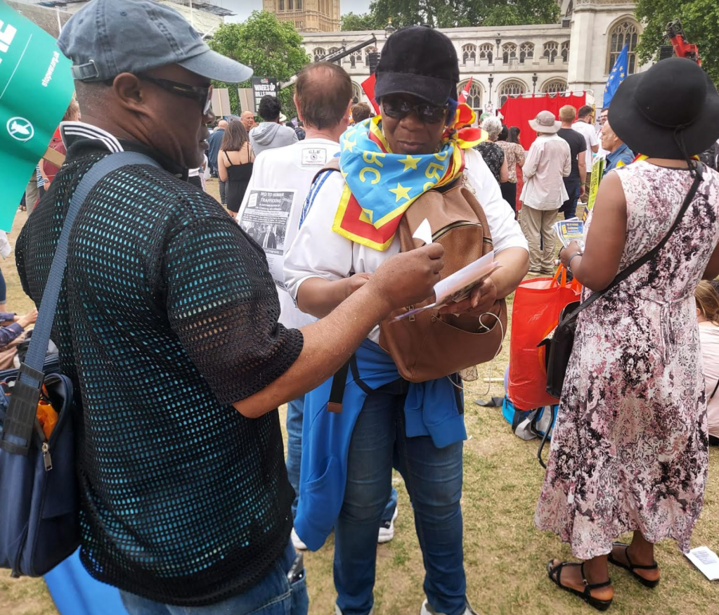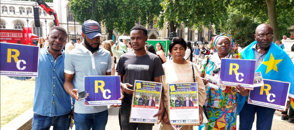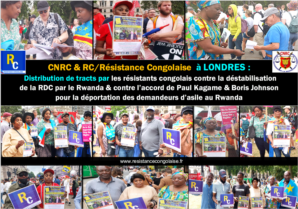 RC/Résistance Congolaise & CNRC – Grande distribution de tracts à Londres contre la traite des êtres humains à travers l’accord entre Boris Johnson et Paul Kagame visant à déporter vers le Rwanda des demandeurs d’asile en provenance du Royaume uni (Sam 18 Juin 2022)