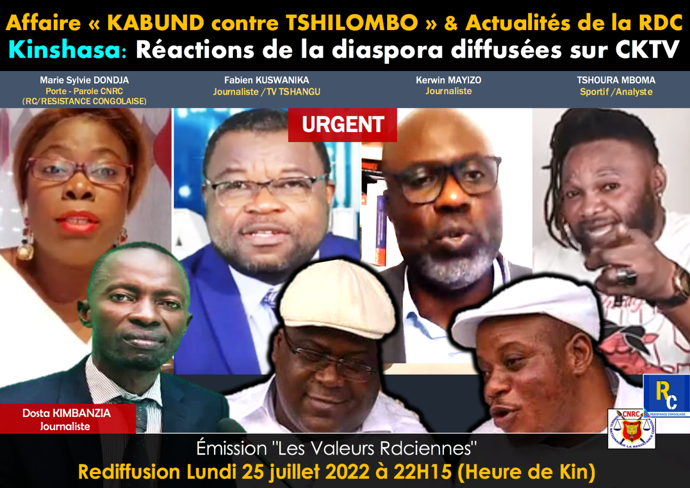 VIDEO/ Affaire « KABUND contre TSHILOMBO » & Actualités de la RDC – Réactions de la diaspora diffusées sur Canal Kin TV (CKTV)