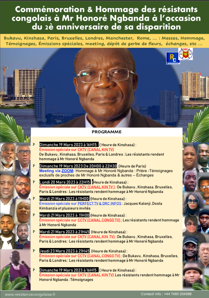Programme / Commémoration du 2eme anniversaire de la disparition de Mr Honoré NGBANDA ( Bukavu, Kinshasa , Paris, Bruxelles, Londres , etc …) Partager : Cliquer pour partager sur X(ouvre dans une nouvelle fenêtre) X Cliquez pour partager sur Facebook(ouvre dans une nouvelle fenêtre) Facebook J’aime chargement… Laisser un commentaire Annuler la réponse. Δ