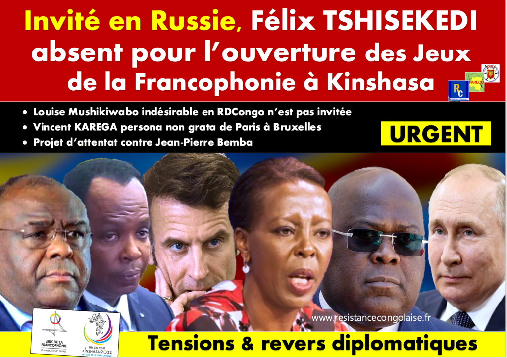 Le CNRC a pourtant été informé par les réseaux de Monsieur Honoré Ngbanda à l’intérieur comme à l’extérieur de la RDC, que ni Félix Tshisekedi , ni Louise Mushikiwabo ne seront à Kinshasa pour l’ouverture des Jeux de la francophonie cette semaine. Madame Mushikiwabo (Secrétaire Générale de l’OIF) étroite collaboratrice de l’Hitler africain Paul Kagame et complice avec lui durant des années des pillages et massacres en République démocratique du Congo, n’est pas invitée par le gouvernement congolais.
