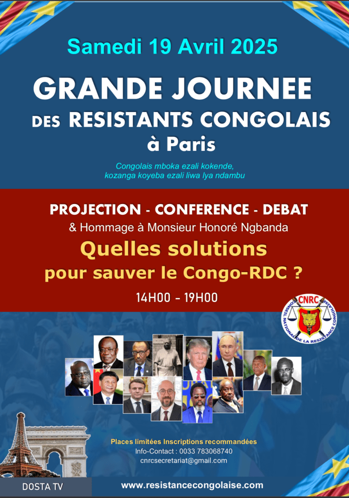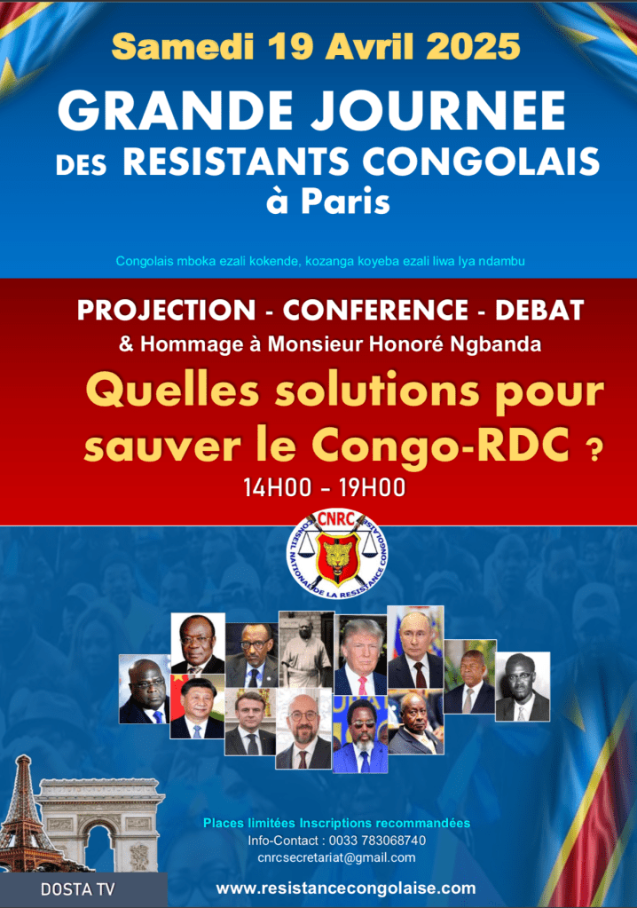 URGENT/RDC : Conférence – Débat-Projection – Grande Journée des résistants congolais à Paris le Samedi 19 Avril 2025 URGENT – RDC Grande journée des résistants congolais à Paris le Samedi 19 Avril 2025 CONFERENCE-DEBAT PROJECTION Partager : Cliquer pour partager sur X(ouvre dans une nouvelle fenêtre) X Cliquez pour partager sur Facebook(ouvre dans une nouvelle fenêtre) Facebook J’aime chargement… Laisser un commentaire Annuler la réponse. Δ