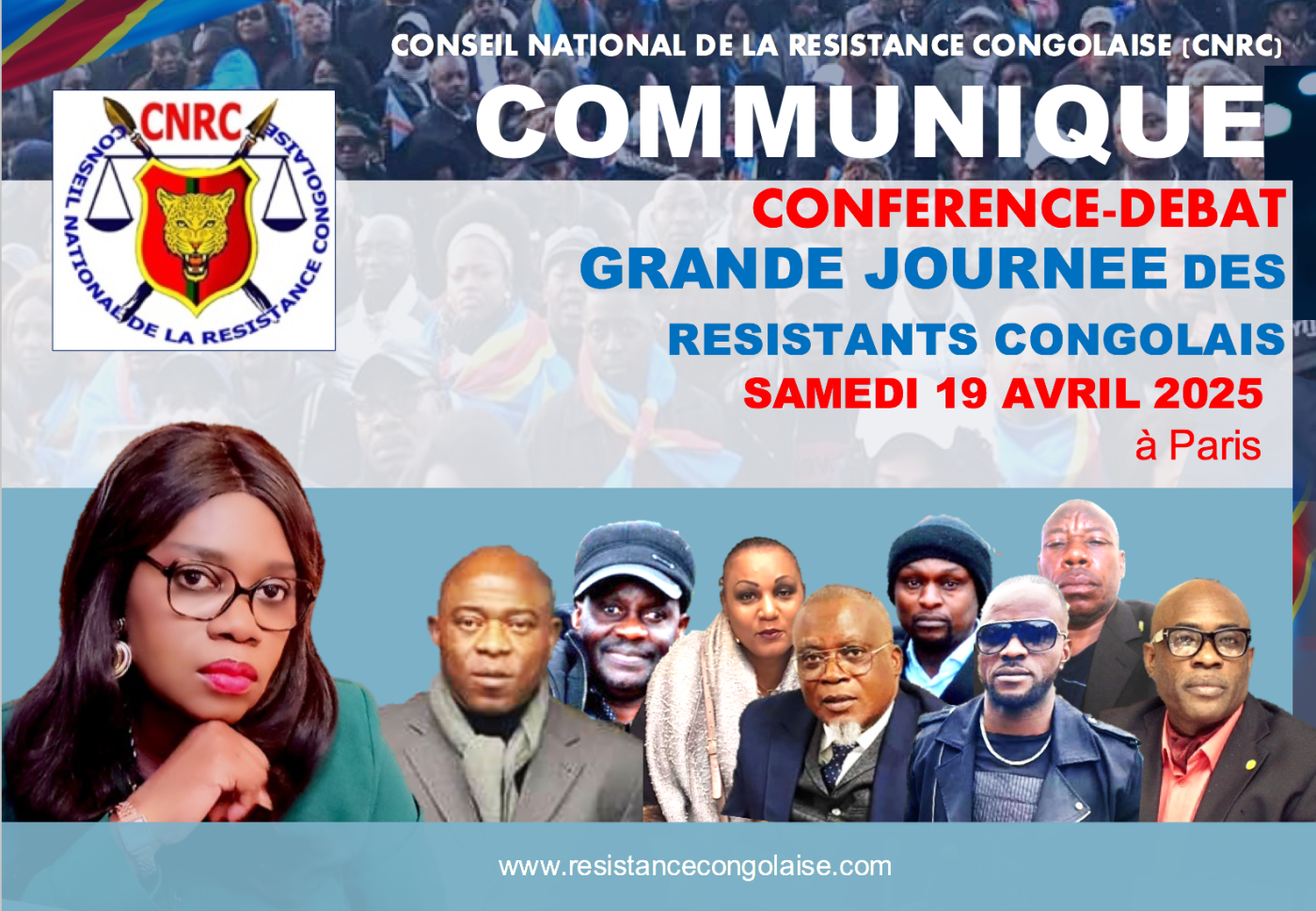 C’est dans ce contexte et dans le souci d’accélérer et amplifier le combat du peuple congolais pour la dignité et l’indépendance que le CNRC organise une conférence débat ce Samedi 19 avril à Paris (Cf adresse ci-dessous), sous le thème »Quelles sont les solutions pour sauver le Congo-Kinshasa ? »