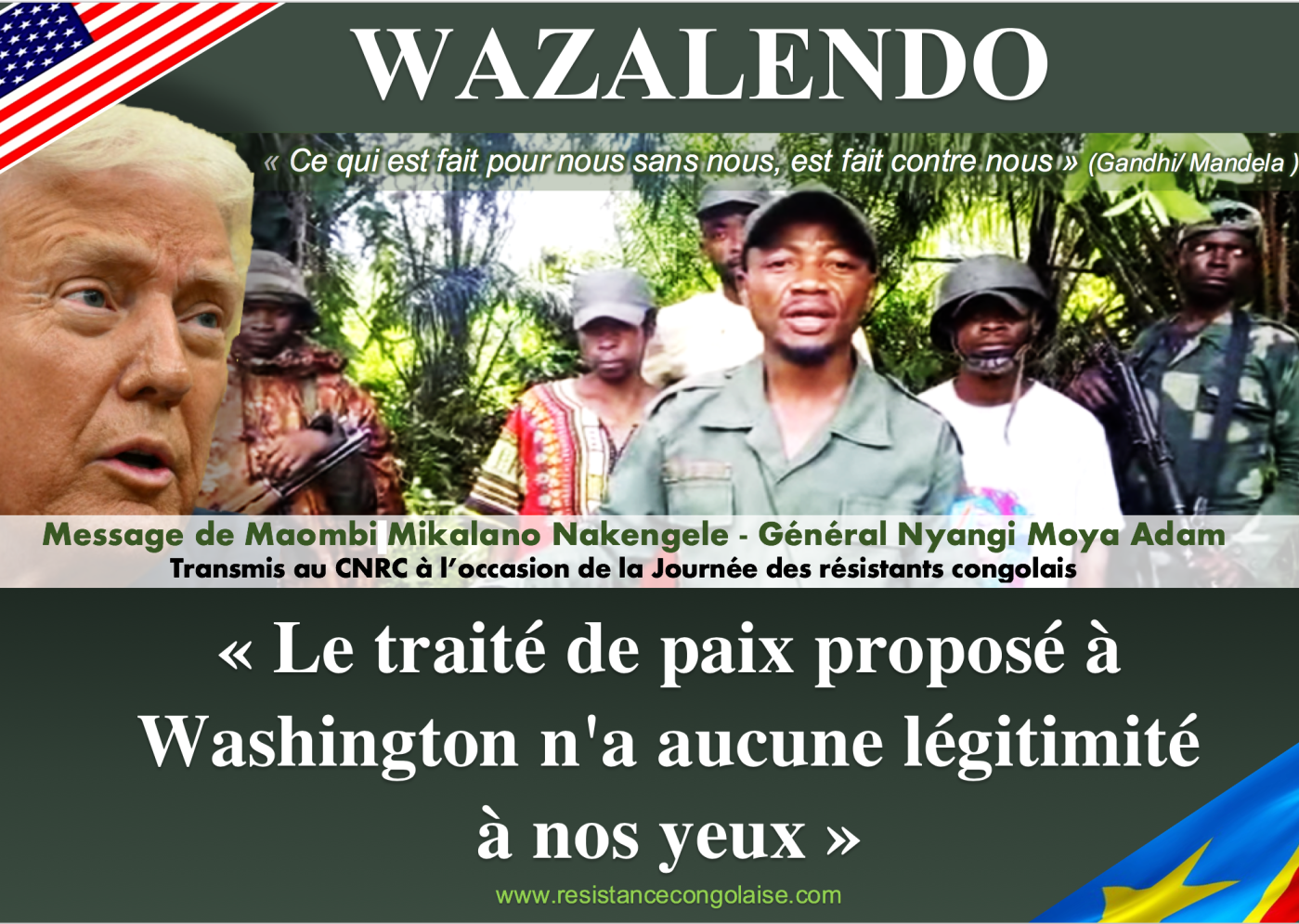Le traité de paix proposé à Washington n’a aucune légitimité à nos yeux, car il ne tient pas compte des intérêts et des aspirations du peuple Wazalendo, le peuple de la RDC. Notre détermination reste inébranlable, car nous défendons fermement notre héritage et notre patrie.