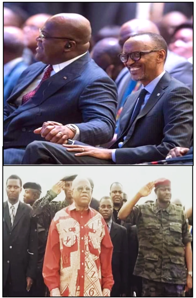 Durant ses années d’exil Monsieur Honoré Ngbanda après la chute du Zaïre , a réuni et publié une pile de documentation dont les congolais ont pu prendre connaissance et continuent à s’approprier aujourd’hui. Donc, oui , nous savons que notre pays est bel et bien occupé et que derrière les discours fallacieux de Paul Kagame surnommé à juste titre l’Hitler africain et ses stratagèmes, ce qu’il vise surtout c’est l’appropriation des terres congolaises et le pillage de nos ressources . Pour atteindre son objectif , il opère sur notre territoire depuis des années un véritable génocide au vu et au su de tous . Oui, tous vos services et donc les anciens collègues de Monsieur Honoré Ngbanda savent que le traitre et collabo Félix Tshisekedi surnommé à juste titre le « Maréchal Pétain Congolais » (en référence là encore à la seconde guerre mondiale ) et celui qui se fait appeler « Joseph Kabila » doivent leurs postes au régime d’occupation téléguidée par Kigali et mis en place en RDCongo grâce à l’AFDL dès le 17 Mai 1997.