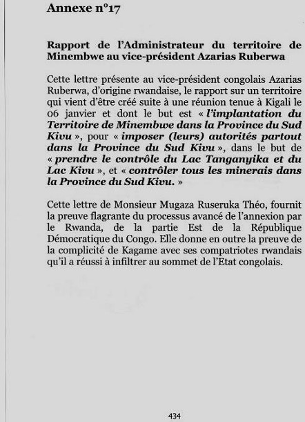 Et quand on pose la question à l’ex-premier ministre rwandais, M. Fausrin Twagiramungu, ce qu’il pense de la problématique des « Banyamulenge », sa réponse est implacable : «C’est quoi ça Banyamulenge ? Puis que moi j’ai été à Mulenge quand j’étais jeune. On ne peut pas prendre les gens d’un village et les transformer en ethnie. Le problème de la nationalité peut exister, ça, je ne le nie pas. Mais dire que tous les Tutsis qui sont dans le Nord et Sud-Kivu prennent l’identité des « Banyamulenge » comme je le vois dans la presse américaine, même belge et française, franchement, c’est extraordinaire. On va prendre une portion, une petite portion, vous dis-je, tout près de Bujumbura et on dit : «Bon voilà, les Banyamulenge» ; Mais c’est quoi cette histoire des Banyamulenge » ? Et d’ajouter : « Je pense qu’on ne devrait pas avoir une telle gourmandise, nous devons nous contenter de notre petit territoire, le Rwanda. Monsieur Kagame croit que le Rwanda n’est pas suffisant, souvent il dit en anglais «it’s like a district of Uganda (c’est comme une circonscription de l’Ouganda), donc, ce n’est pas suffisant pour lui. Et on doit aller chercher les frontières qui existaient en 1885 lorsque la conférence de Berlin a été organisée[12] ! Qu’est ce cela veut dire ? Ceci veut dire que nous devons engager une bataille contre le Congo. (…) Ce qu’ils veulent, c’est écraser les Congolais, écraser le pouvoir congolais, exploiter le Congo tant que le Congo, d’après ce qu’ils disent, reste inorganisé» …[13]