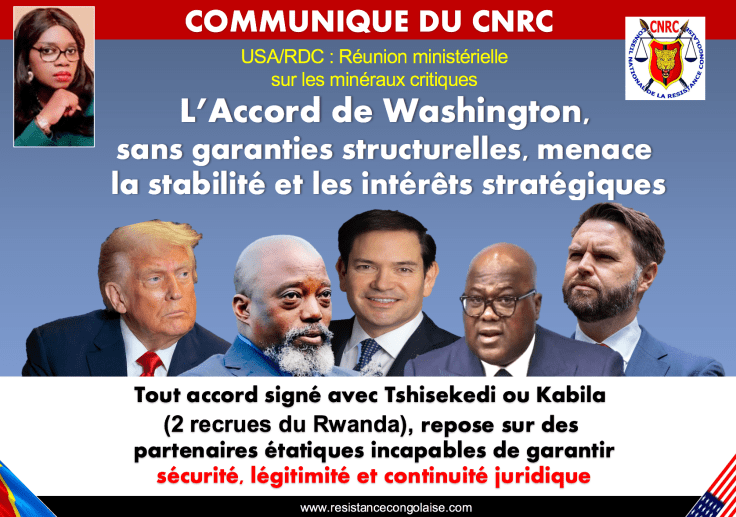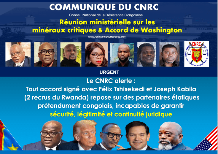 Paris, 05 février 2026 / Le Conseil National de la Résistance Congolaise (CNRC en sigle ) exprime ses profondes réserves quant à la capacité du gouvernement congolais actuel à garantir la pérennité de quelle qu’accord que ce soit et en particulier l’Accord de Washington .