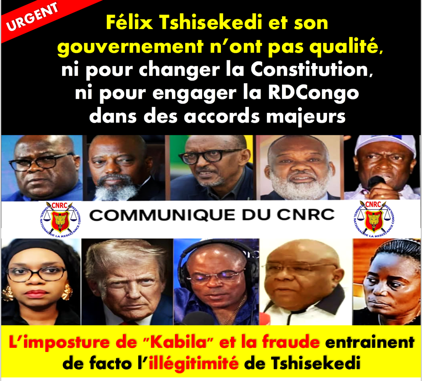 PARIS, le 17 mars 2026 – Le Conseil National de la Résistance Congolaise (CNRC) suit avec la plus grande attention l’évolution de la situation politique en République Démocratique du Congo. Au regard des révélations, des affirmations et plusieurs faits graves portés à la connaissance de l’opinion nationale et internationale par différents acteurs politiques de la RDC, le CNRC tient à faire la déclaration suivante :