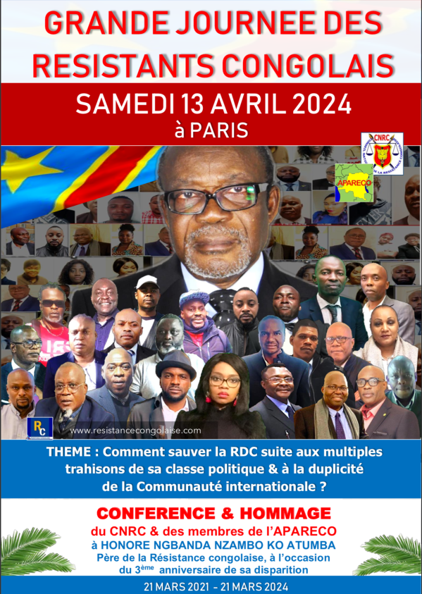 Déclaration du CNRC & de l'APARECO (RC) Marche des Congolais à Paris contre Félix TSHISEKEDI ce Samedi 02 Mars 2024 Félix TSHISEKEDI n’a pas rompu ses alliances avec les pays agresseurs de la RDCongo Face à une insécurité aggravée et persistante dans l’ensemble des territoires de la République démocratique du Congo et plus particulièrement à... Lire la Suite →