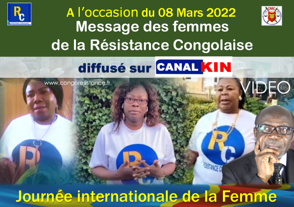 VIDEO/ Message des femmes de la Résistance Congolaise à l'occasion de la journée internationale de la femme, diffusé sur Canal Kin Tv (08 Mars 2022) https://www.youtube.com/watch?v=vfh7JnoIYf0