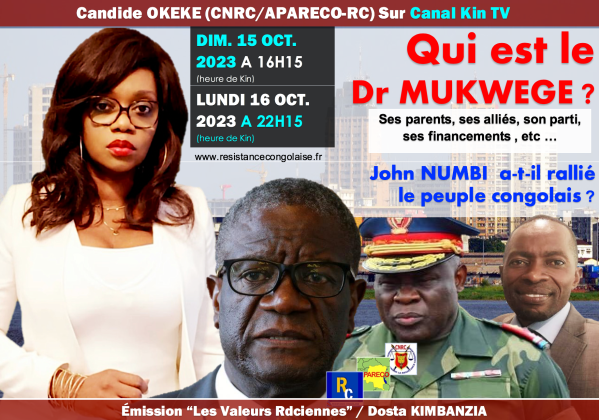 Candide OKEKE (CNRC/APARECO-RC) Sur Canal Kin TV -Qui est le Dr MUKWEGE ?- John NUMBI a-t-il rallié le peuple congolais ?- DIM. 15 OCT. 2023 A 16H15(heure de Kin)- LUNDI 16 OCT. 2023 A 22H15(heure de Kin)