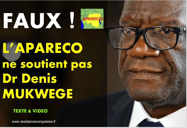 FAUX ! L’APARECO ne soutient ni le Dr Denis MUKWEGE ni aucun autre candidat aux éventuelles élections en RDC pays occupé (TEXTE & VIDEO)