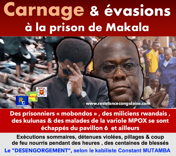 Carnage et évasions à la prison de Makala Viols, pillages, exécutions sommaires pendant des heures ce lundi 02 Septembre 2024 de 1H à 6h du matin à la prison de Makala , des prisonniers rwandais , des milliciens mobondos , des kulunas et des malades de la variole MPOX désormais dans la nature !! Il y... Lire la Suite →