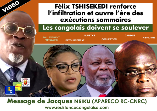 Félix TSHISEKEDI renforce l'infiltration et ouvre une nouvelle ère des exécutions sommaires Message de Jacques NSIKU ( APARECO-RC/CNRC) https://www.facebook.com/candide.okeke/videos/430235413186600
