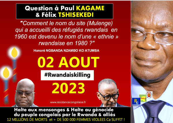 02 AOUT 2023 Commémoration du génocide du peuple congolais par le Rwanda & Alliés Question à Paul KAGAME & Félix TSHISEKEDI : "Comment le nom du site (Mulenge) qui a accueilli des réfugiés rwandais en 1960 est devenu le nom d’une « ethnie » rwandaise en 1980 ?" Honoré NGBANDA NZAMBO KO ATUMBA https://youtu.be/MiF_elwp06E Halte aux mensonges... Lire la Suite →