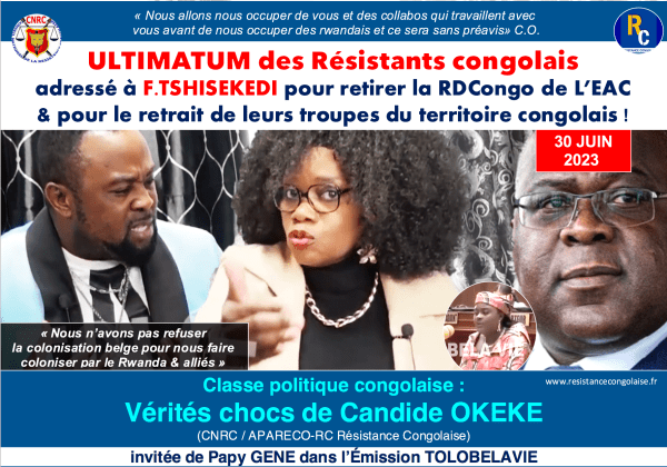 VIDEO-ULTIMATUM des Résistants congolais adressé à F.TSHISEKEDI /EAC 30 JUIN 2023 – Candide OKEKE invité de Papy GENE (Tolobelavie)