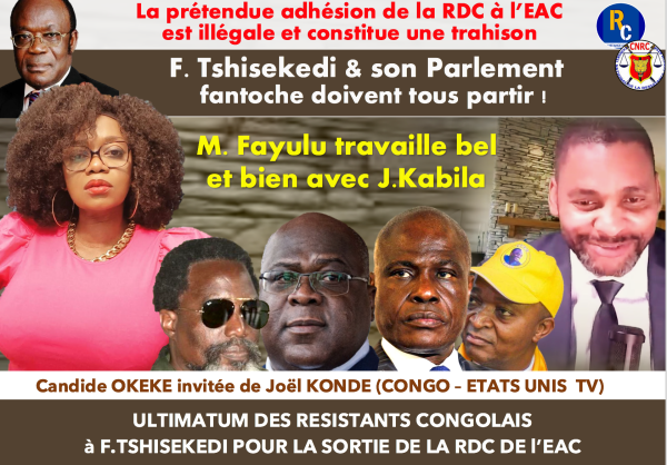 URGENT/ Fayulu travaille avec Kabila - La prétendue adhésion de la RDC à l'EAC est illégale et constitue une véritable trahison : Tshisekedi et son Parlement fantoche doivent partir ! Candide OKEKE invitée de Joel KONDE (Congo Etats Unis TV) "Félix Tshisekedi a jusqu'au 30 juin 2023 pour retirer la RDC de l'EAC : nous... Lire la Suite →