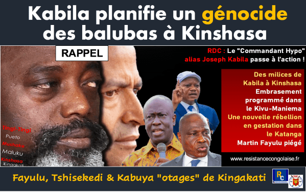 RAPPEL - Kabila planifie un génocide des balubas à Kinshasa A LIRE ICI : https://resistancecongolaise.fr/2021/11/12/alerte-kabila-planifie-un-genocide-des-balubas-a-kinshasa-embrasement-programme-de-lest-de-la-rdc-fayulu-piege-texte-video/?fbclid=IwAR281-9ILis3oFsfehEZ0JnLL1c4aub6wfX46o7TGefM8Yd5T3EBeYegQLI