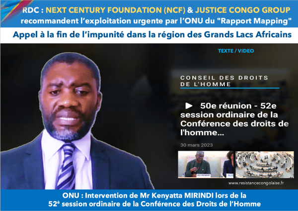 RDC/ONU : NEXT CENTURY FOUNDATION (NCF) & JUSTICE CONGO GROUP recommandent l’exploitation urgente par l’ONU du « Rapport Mapping »- Kenyatta MIRINDI (Texte & VIDEO)