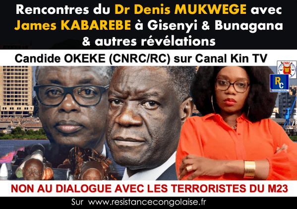 VIDEO/ Rencontres du Dr Denis MUKWEGE avec James KABAREBE à Gisenyi & Bunagana et autres révélations / Candide OKEKE (CNRC/RC) sur CKTV Non au Dialogue avec les terroristes du M23 https://youtu.be/Tb1CpLEd6Cs 🛑Dr MUKWEGE / James KABAREBE: L’une de leurs rencontres a eu lieu à BUNAGANAle 07 Août vers 23 H00 (heure de l’Est) & une autre à... Lire la Suite →