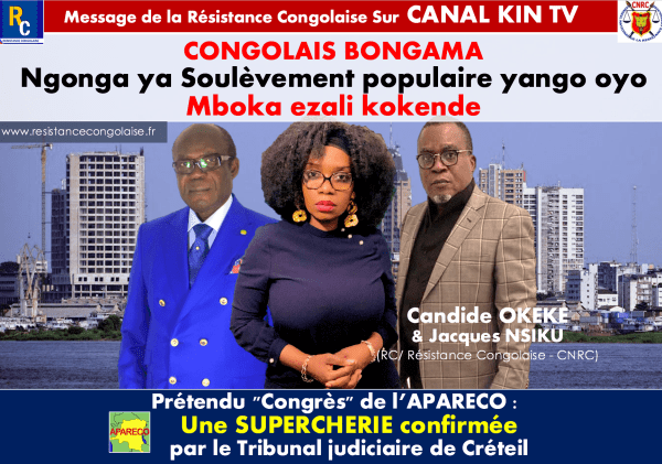 VIDEO/Candide OKEKE & Jacques NSIKU (RC/ Résistance Congolaise - CNRC) Sur Canal Kin TV Mobilisation: CONGOLAIS BONGAMA Ngonga ya Soulèvement populaire yango oyo Mboka ezali kokende Prétendu "Congrès" de l’APARECO : Une SUPERCHERIE confirmée par le Tribunal judiciaire de Créteil Emission "Les Valeurs Rdciennes" https://youtu.be/UgYLptzhD24