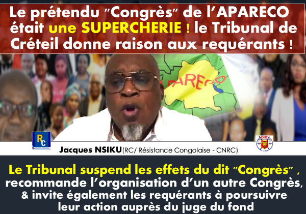 VIDEO/ Le prétendu « Congrès » de l’APARECO était une supercherie : Le tribunal de Créteil donne raison aux requérants !