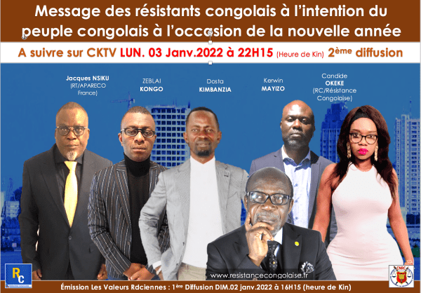A suivre sur CKTV/ Message des résistants à l’intention du peuple congolais pour la nouvelle année (K.MAYIZO, Zeblai KONGO J.NSIKU, Candide OKEKE)
