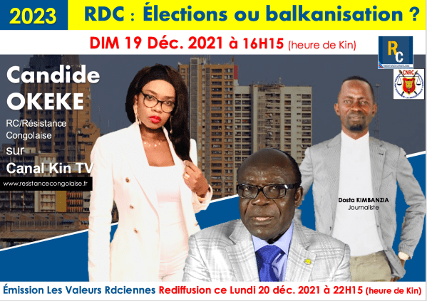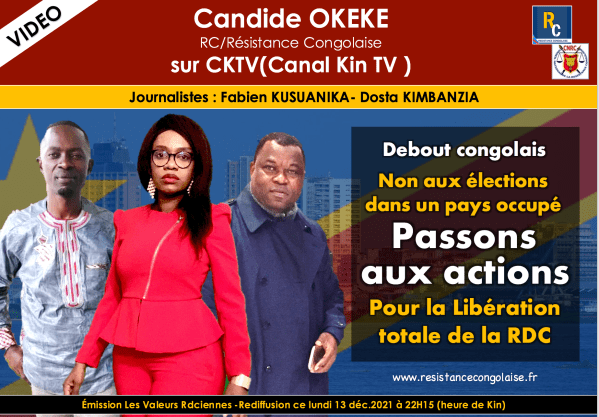 A SUIVRE Sur Canal Kin TV (CKTV) Lundi 27 Décembre 2021 à 22H15 (Heure de Kin) Message des résistants congolais à l’intention du peuple congolais à l’occasion de la nouvelle année Emission "Les Valeurs Rdciennes" : 1ère diffusion Dimanche 26 Décembre 2021 à 16H15 (Heure de Kin) Candide OKEKE (RC/Résistance Congolaise) Mohammed MBOYO(CNRC) Mustapha Patrick... Lire la Suite →
