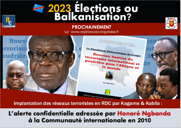 PROCHAINEMENT sur http://www.resistancecongolaise.fr "2023 Elections ou Balkanisation? " Implantation des réseaux terroristes en RDC par Kagame et Kabila : L’alerte confidentielle adressée par Honoré Ngbanda à la Communauté internationale en 2010 Congolais ne soyons pas distraits !