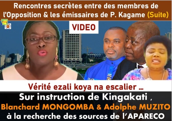 VIDEO/ Rencontres secrètes : "Peuple congolais fongola miso : Vérité ezali koya na escalier..." Sur instructions de Kingakati Blanchard MONGOMBA et Adolphe MUZITO cherchent à connaitre les sources de l'APARECO - Réaction de Marie-Sylvie DONDJA SNE/APARECO https://youtu.be/1-RmikQdgeQ