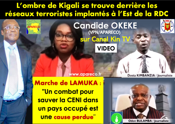 VIDEO/ Candide OKEKE (VPN APARECO) sur Canal Kin TV "L'ombre de Kigali se trouve derrière les réseaux terroristes implantés en RDC" Marche de LAMUKA: "Un combat pour sauver la CENI dans un pays occupé est une cause perdue" https://youtu.be/QdaDAxoqlzU