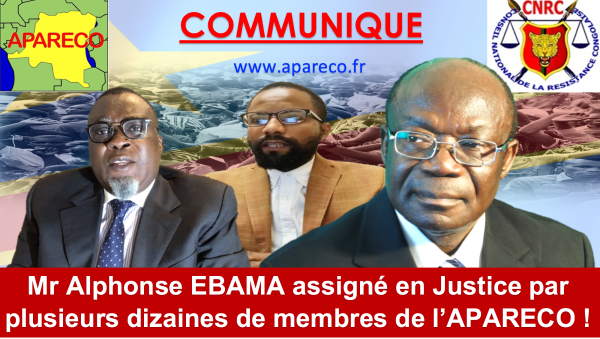 COMMUNIQUE URGENT - Mr Alphonse EBAMA assigné en Justice par plusieurs dizaines de membres de l’APARECO pour tentative d’usurpation de la fonction de Président national de l’APARECO ! Paris, le 28 Août 2021- Les cadres et membres de l’APARECO informent que plusieurs dizaines de membres de l’Alliance des patriotes pour la Refondation du Congo (APARECO en sigle)... Lire la Suite →