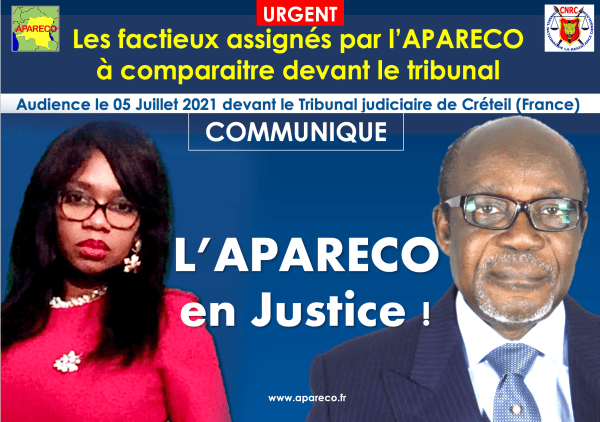 COMMUNIQUE DU SECRETARIAT GENERAL DE L’APARECO LES FACTIEUX ASSIGNÉS PAR L’APARECO À COMPARAITRE DEVANT LE TRIBUNAL Une Audience a été fixée devant le Tribunal judiciaire de Créteil (France) le 05 juillet 2021 En dépit de sanctions disciplinaires prononcées par l’APARECO, les cadres exclus ont persisté en organisant un Congrès électoral sauvage Une procédure disciplinaire est désormais en... Lire la Suite →