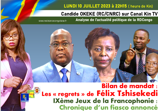 LUNDI 10 JUILLET 2023 à 22H15 ( heure de Kin) Candide OKEKE (RC/CNRC) sur Canal Kin TV Analyse de l’actualité politique de la RDCongo Bilan de mandat : Les « regrets » de Félix Tshisekedi XIème Jeux de la Francophonie : Chronique d’un fiasco annoncé Première diffusion Dimanche 09 Juil. 2023 (Émission "Les Valeurs Rdciennes") Sur CKTV A 16H15... Lire la Suite →